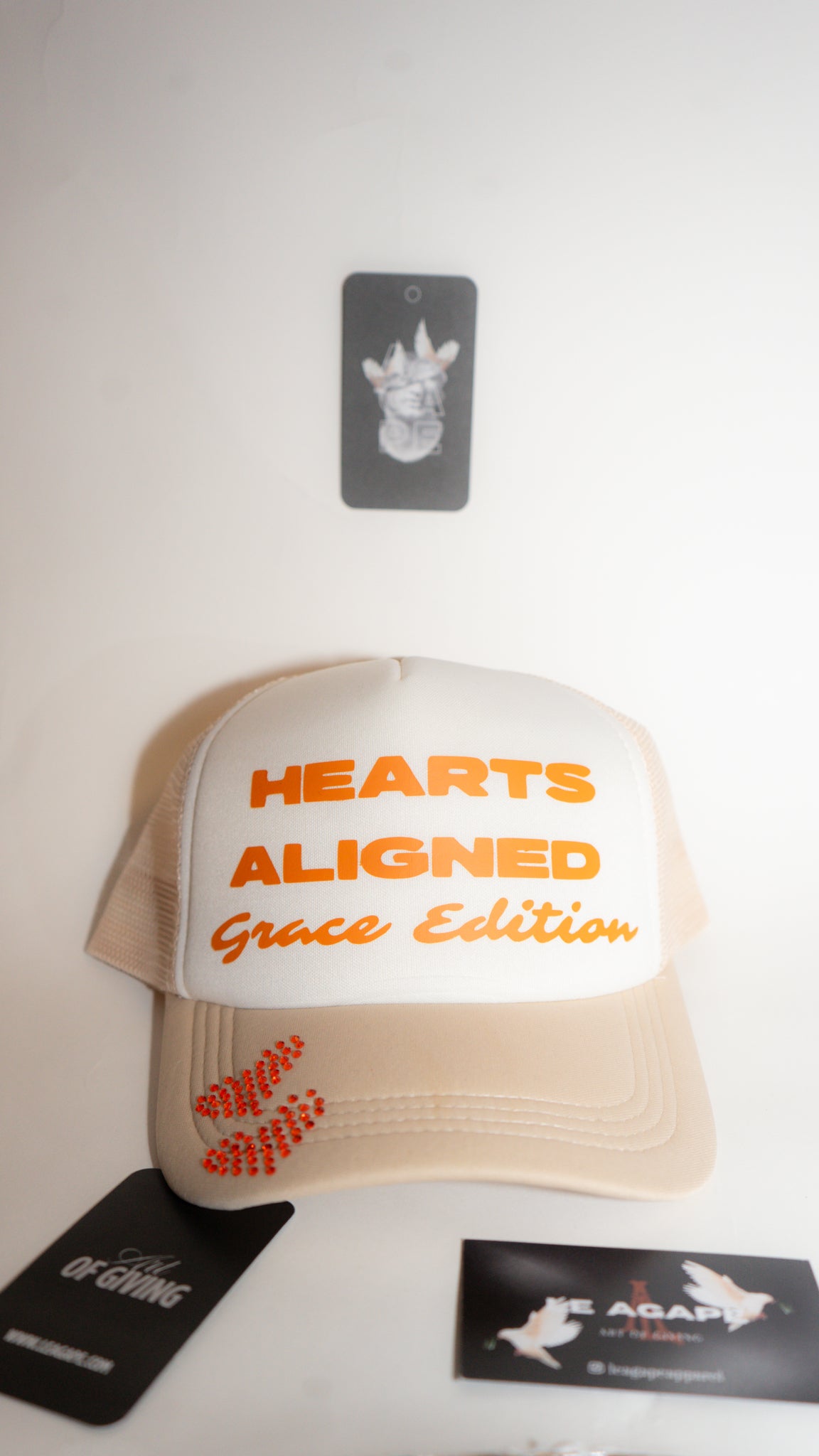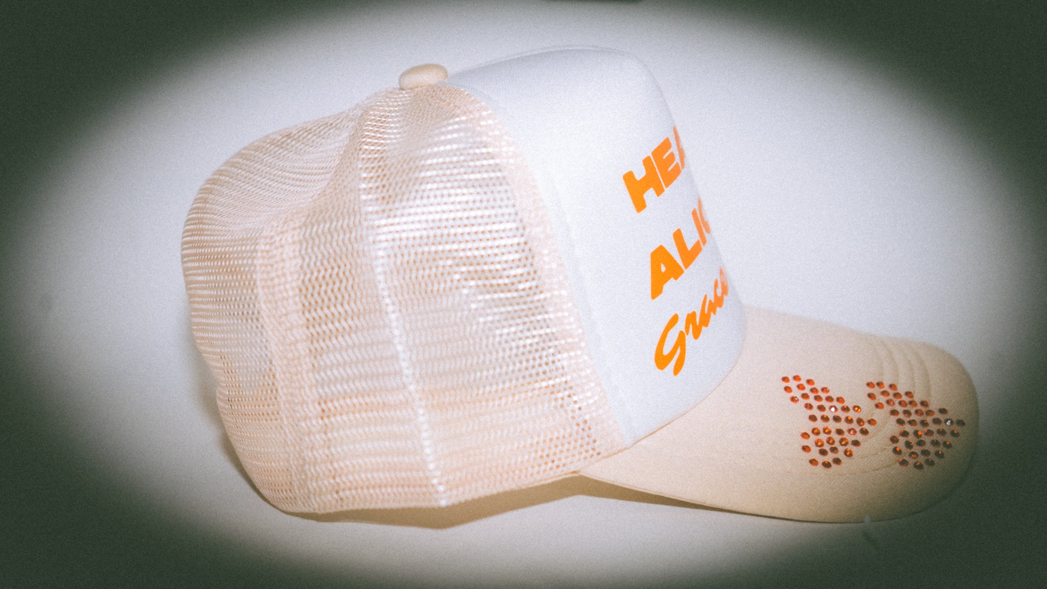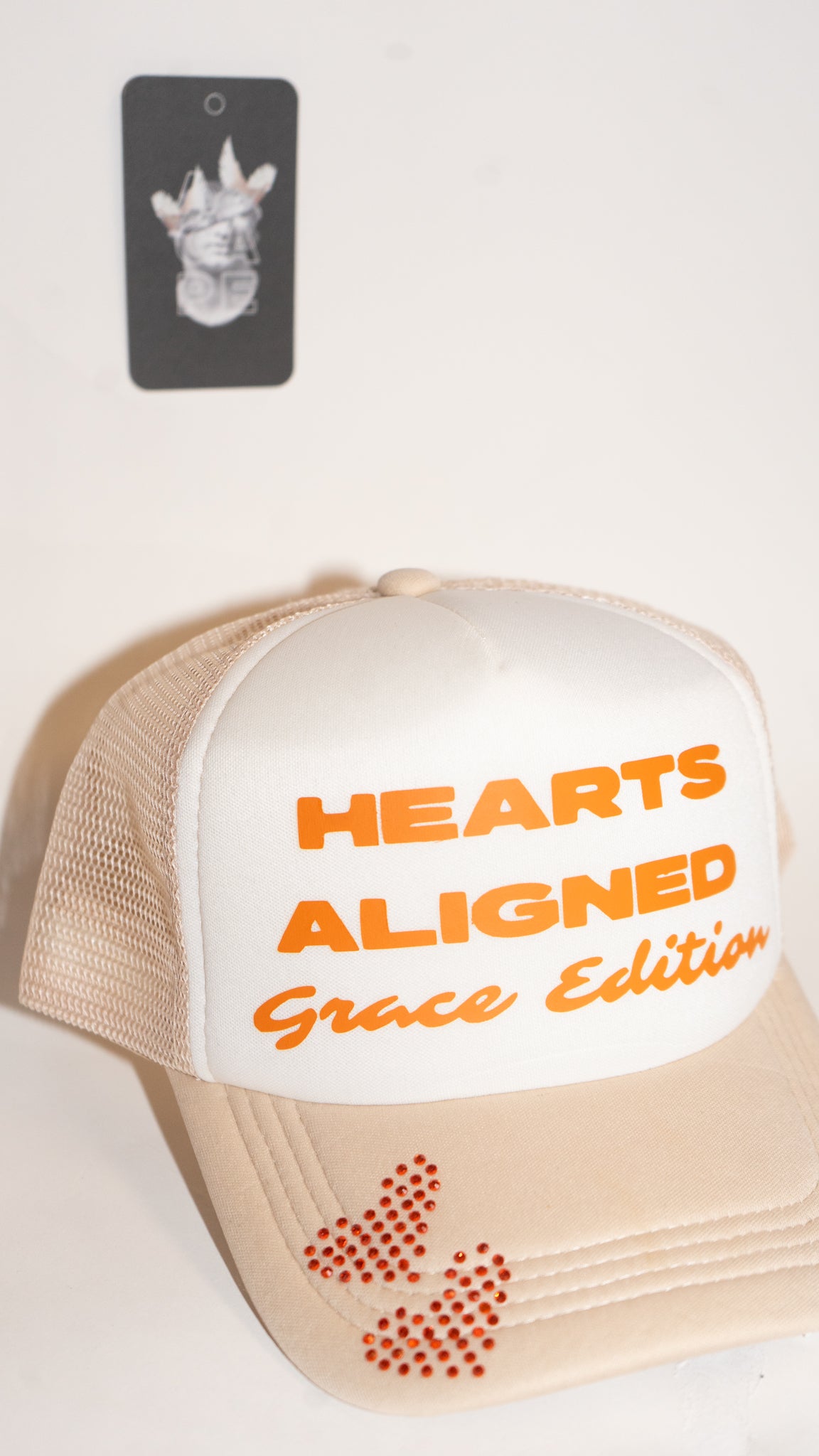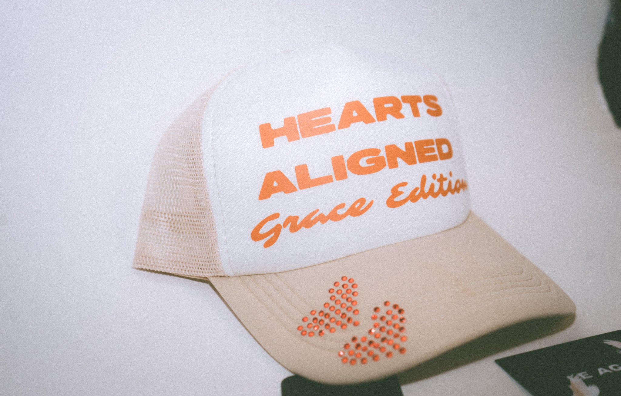 Show your unique style with the Heart Aligned Trucker Hat, featuring a striking rhinestone heart detail that adds just the right touch of sparkle. Designed for comfort and breathability, its classic mesh back keeps you cool while making a bold statement. Perfect for everyday wear or outdoor adventures, this hat combines fashion and function effortlessly. Elevate your look with a standout accessory that highlights your personality.
